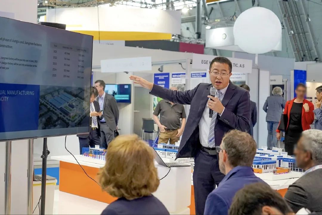 歐洲區(qū)域總經(jīng)理劉慧博為現(xiàn)場客戶答疑